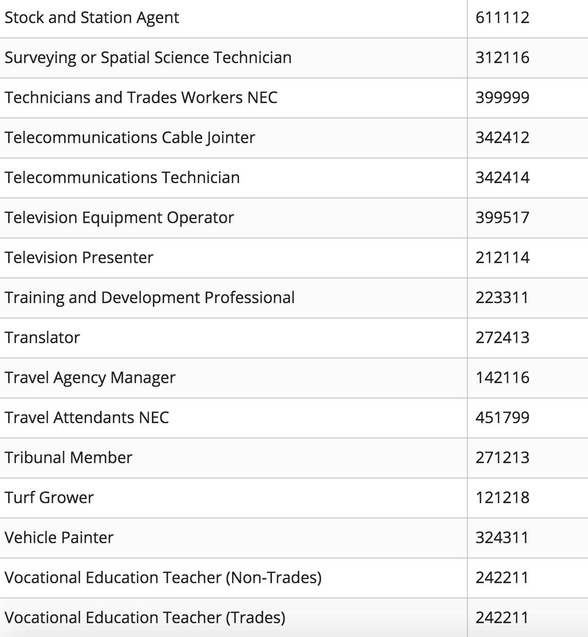 STSOL现有451个职业,比CSOL原有的651个职业清单减少200个。由于笔译(Translator)、进出口专员(Importer or Exporter)、市场研究员(Market Research Analyst)、医药销售代表Sales Representative (Medical and Pharmaceutical Products) 、工业产品销售代表 Sales Representative (Industrial Products)、旅行社经理(Travel Agency Manager) 等职业均被从STSOL上移除,这些职业,将无法再用于申请上述签证!