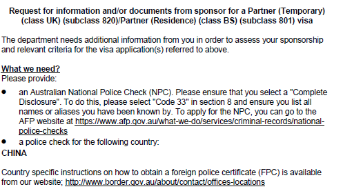 澳信移民专家解读: 无犯罪证明的出具需要一定时间,特别是其他国家的无犯罪证明。根据我们目前提交的案例来说,2016年11月19日后,审理配偶移民的签证官在收到申请后,很快便会要求担保人在28天之内提供自己的无犯罪证明。这里提醒大家务必在递交之前将相关资料准备齐全,以免导致不必要的延误!