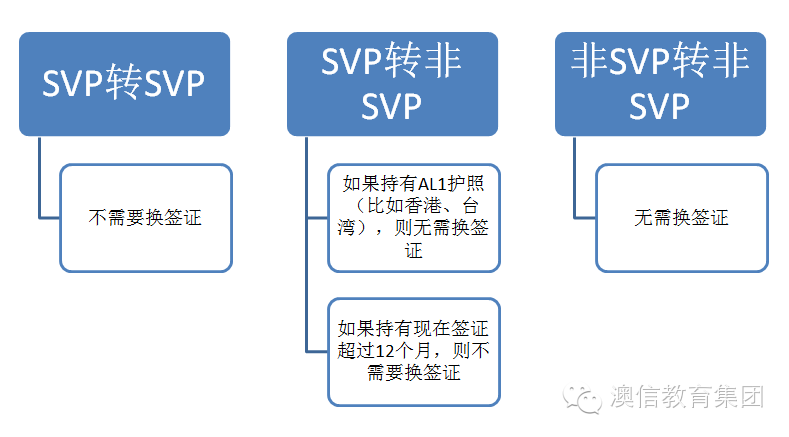SVP签证持有人转到另一个非SVP课程需要更换签证: