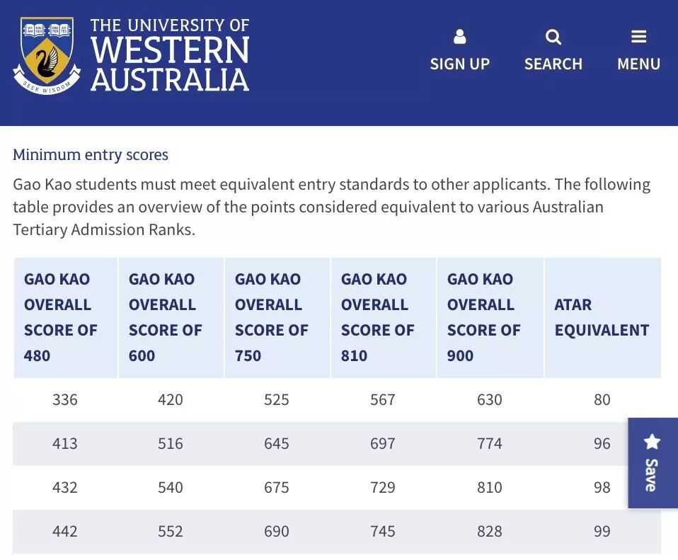 西澳大学的高考录取要求与其ATAR澳洲高考录入要求挂钩,基本上考到一本线就可申请大部分专业(详见下表)!