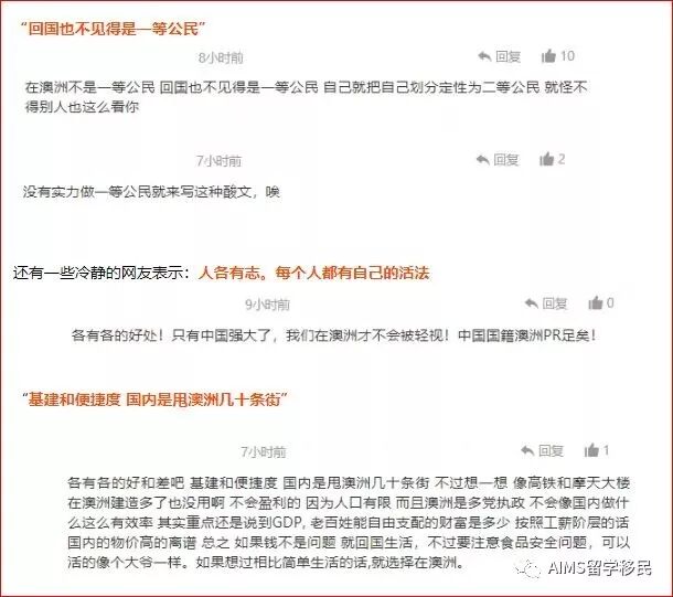 网友的激烈评论(下图) 那么,哪些人不适合呆澳洲,哪些人适合呆澳洲呢?我们从以下几点出发讨论得出的结果。(一步AIMS移民留学原创文)