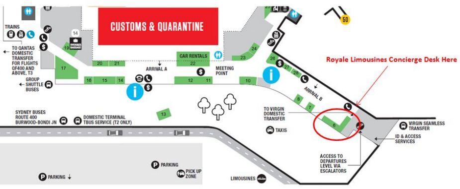 到达后 ,请前往悉尼机场国际到达航站楼(Terminal 1)大厅 ,寻找Arrival Gate B附近的Royale Limousines的柜台,出示你的UTS CoE与护照,工作人员就会帮你安排接机车辆。