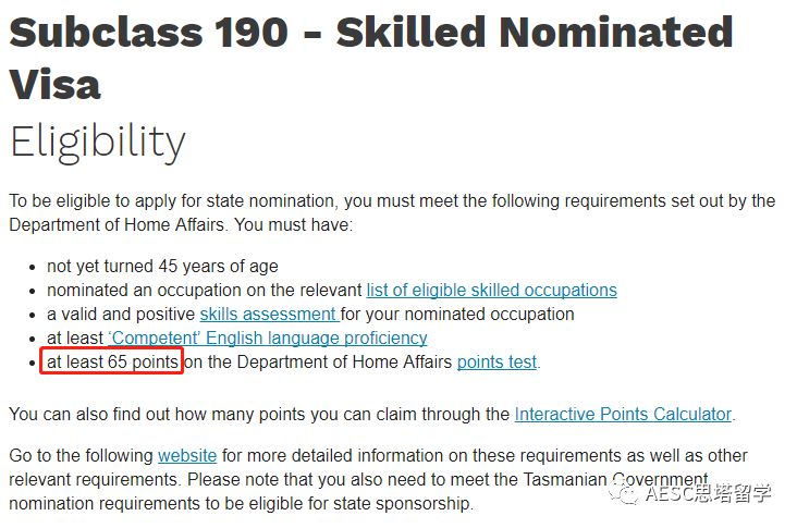 与此同时,塔斯马尼亚也很快就赶上了澳大利亚移民局的脚步,塔州州政府官网上也在2018年7月1日,也就是今天将移民分数有原来的60分,涨为目前的65分。