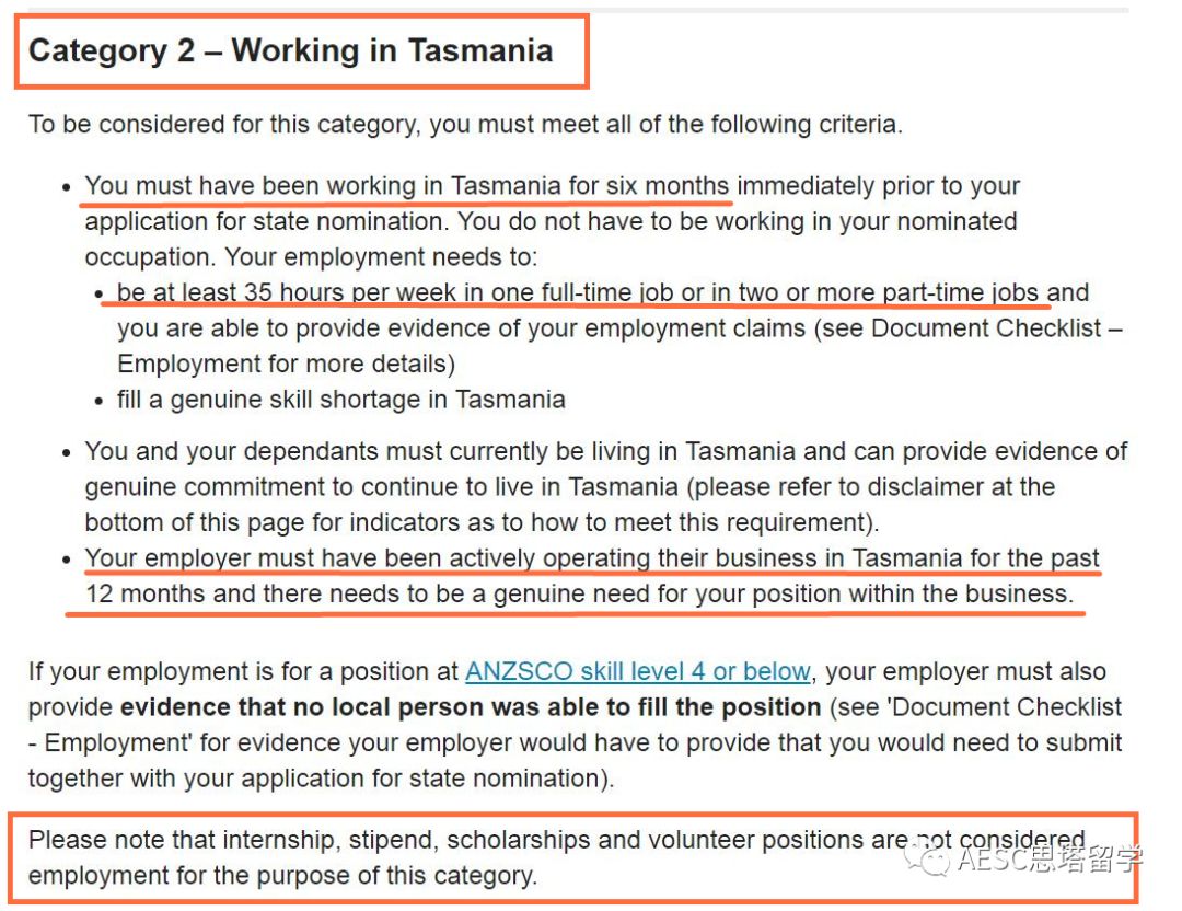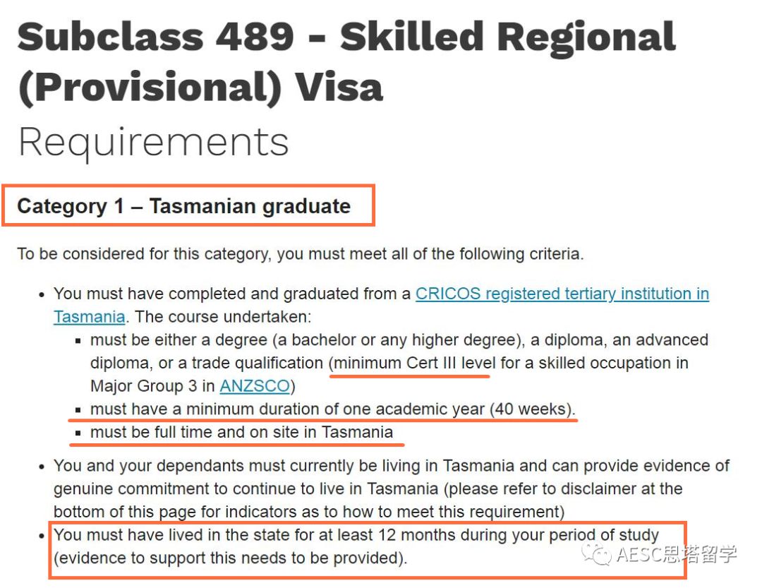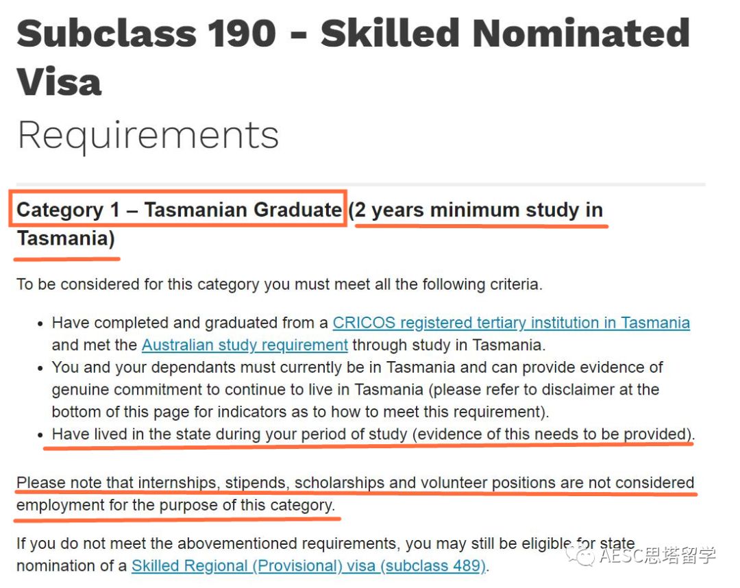 塔州190 Category 1-Tasmania graduate旁边有写2 years minimum studyin Tasmania。