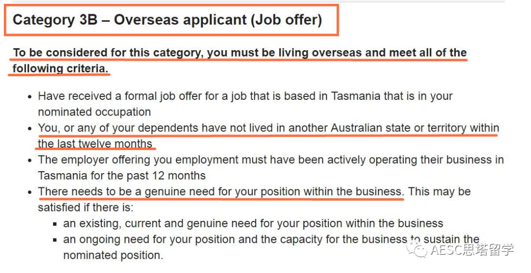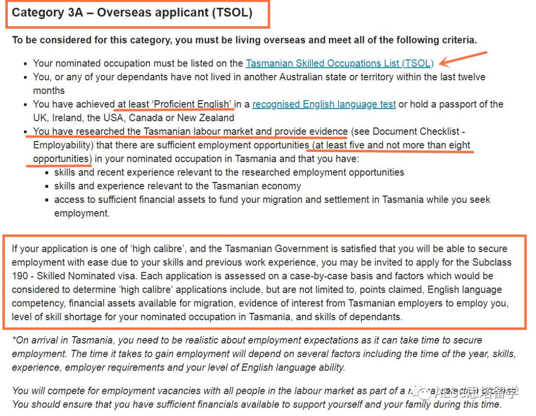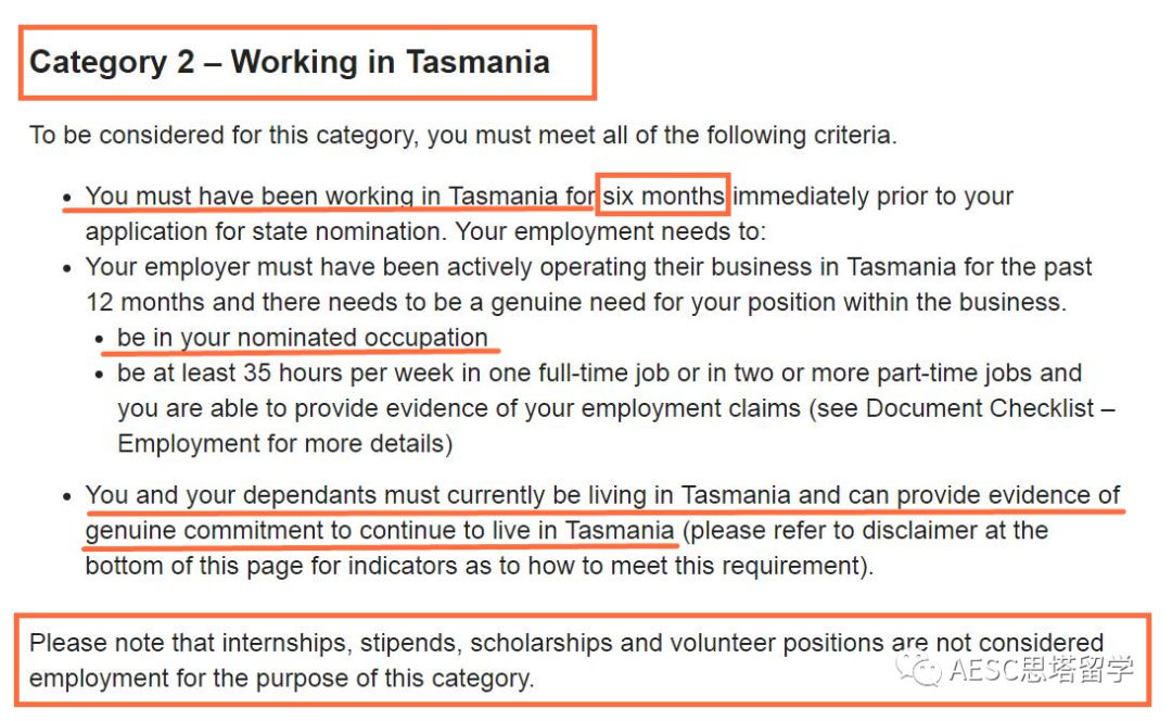 1) 塔州毕业生 (Category 1 -Tasmanian Graduate, 2 years minimum study in Tasmania) 更加强调在塔州的学习时间: 特别突出强调要在塔斯马尼亚学习至少2年;