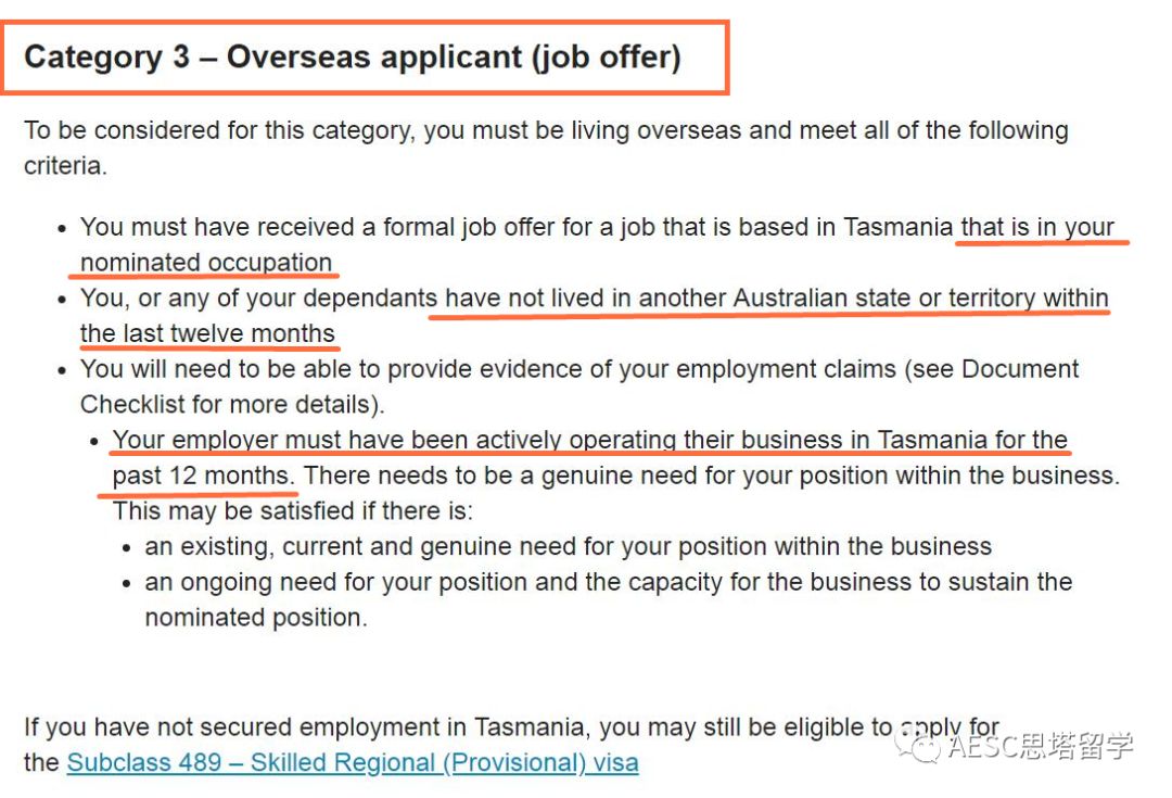 变动解析: 类似于塔州190的毕业生分类,塔斯马尼亚同样更加突出强调主副申请人在塔州的生活和居住情况,看中申请人持续留在塔斯马尼亚的意愿。